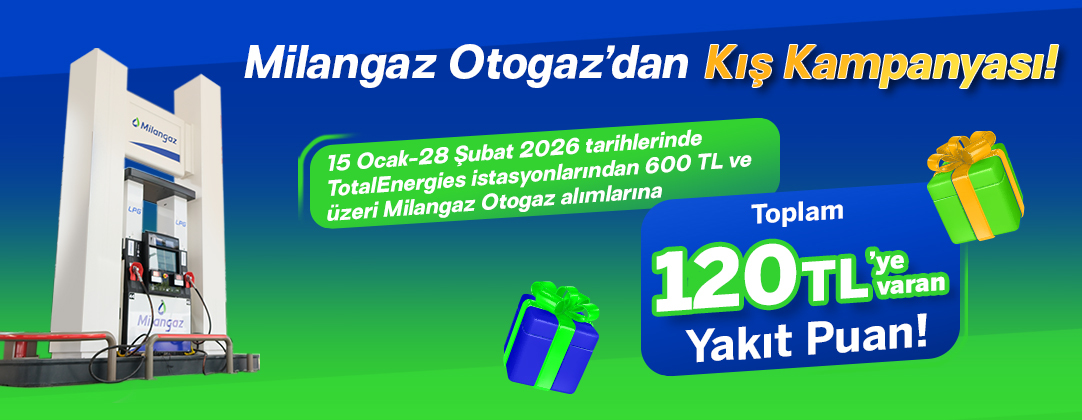 15 Ocak – 28 Şubat 2026 tarihleri arasında, TotalEnergies istasyonlarından Milangaz Otogaz alışverişlerinde yakıt puan kazanma fırsatını kaçırmayın!